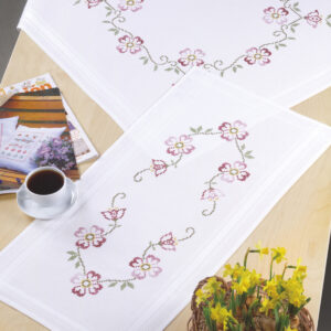 Blomsterduk, påtegnet tekstil til broderi