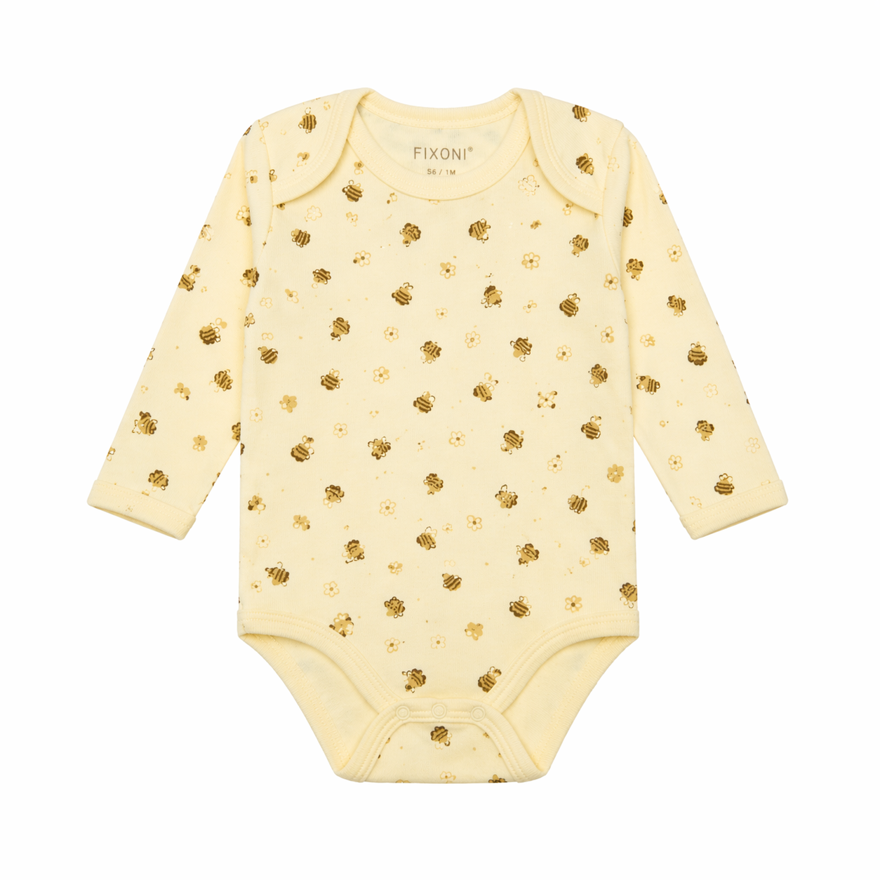 Langermet body fra Fixoni i 100%bomull. Bodyen kan enkelt tres av nedover beina, om det skulle være lettere enn å tre den over hode.
