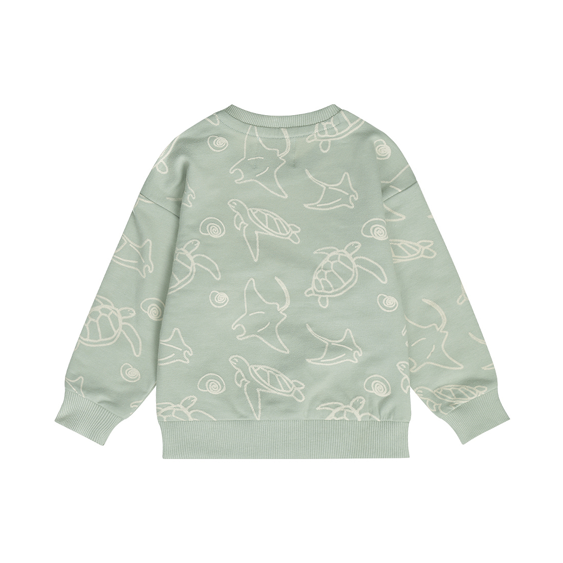 Myk genser med sjømotiver i en dus aquagrønn farge. Genseren er av bomull og passer fint til å pynte opp et hverdagslig antrekk.