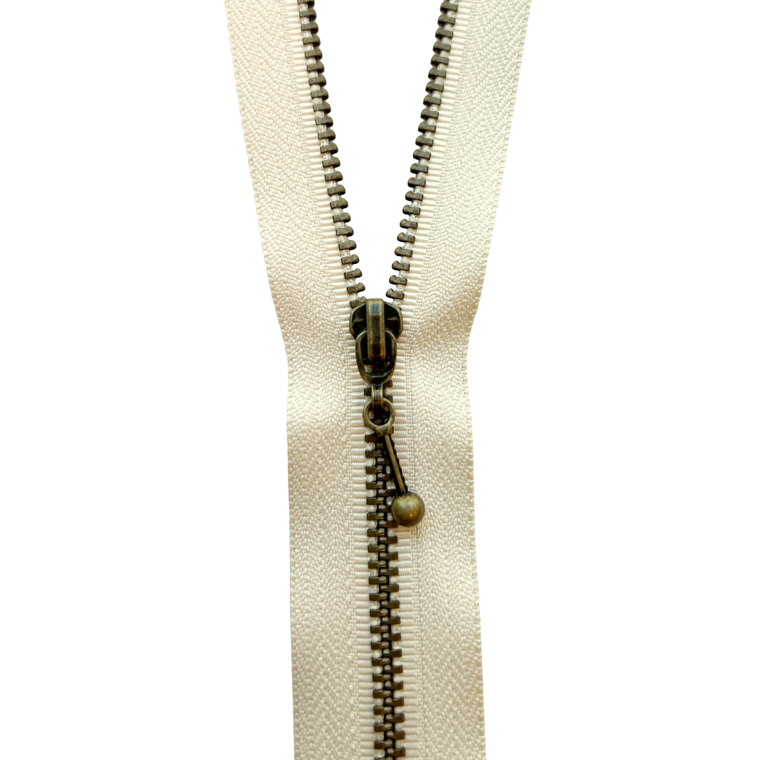 Glidelås med dekorativ revehale. Metall i antikk messing.