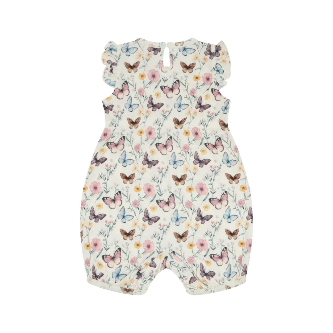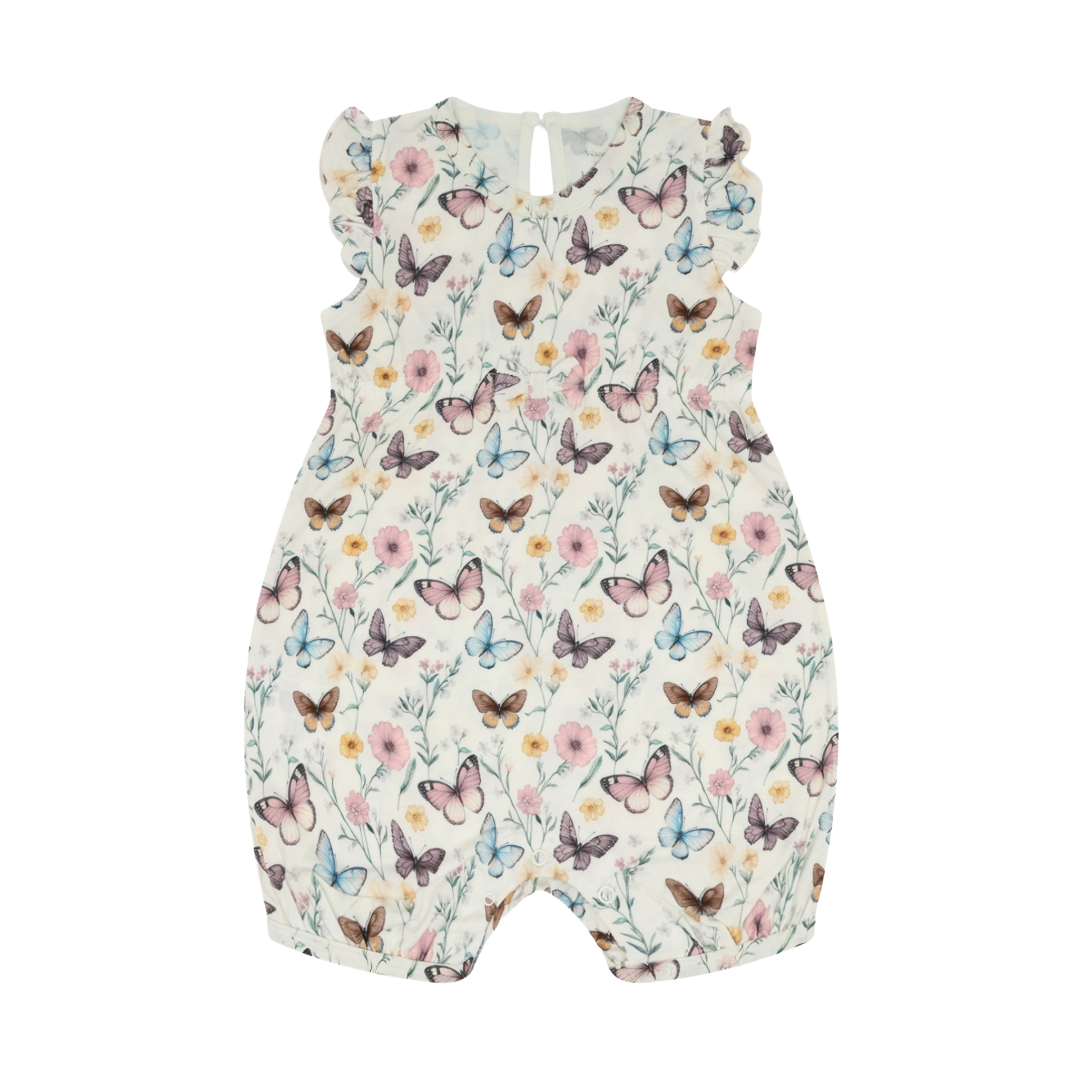 Kortermet drakt i bambus m/Sommerfugler, Naturhvit