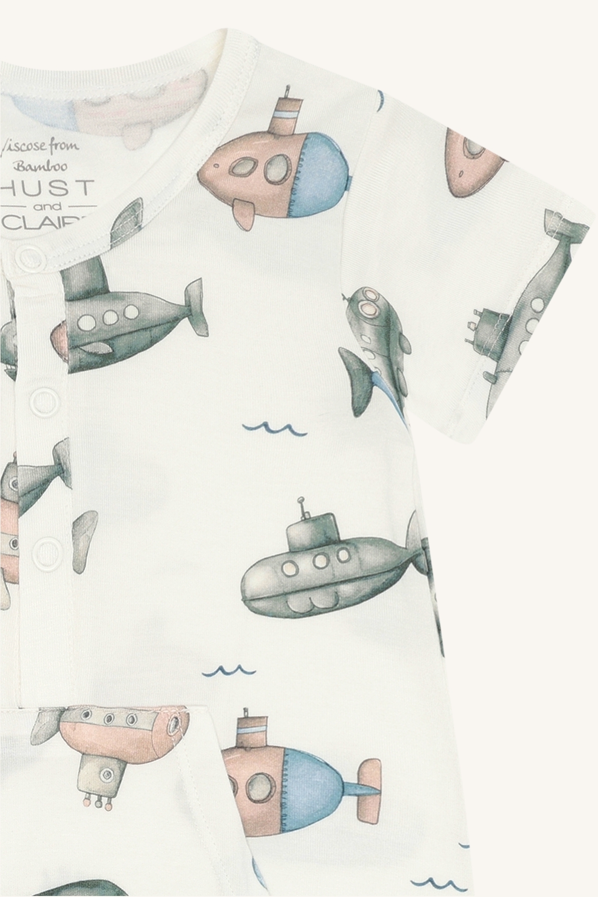 Nydelig drakt fra Hust & Claire i mykeste viskose fra bambus. Drakten er kortermet og korte ben og passer godt på varme sommerdager. Drakten har knapper med åpning, slik at du lett kan skifte bleie.