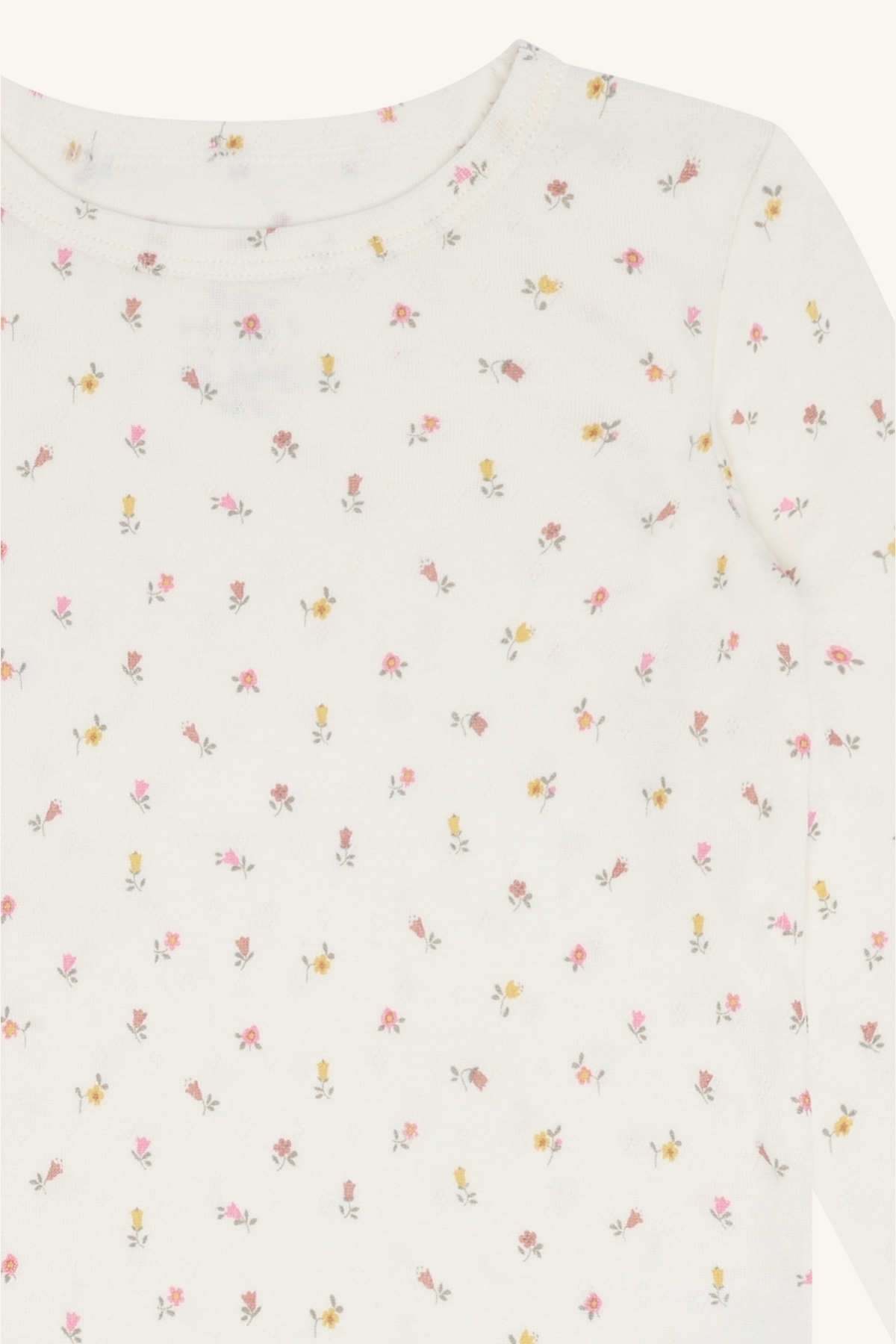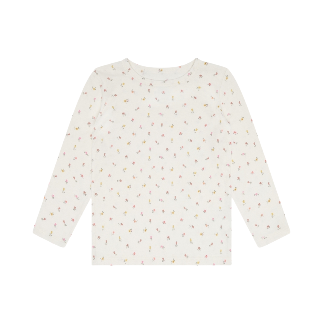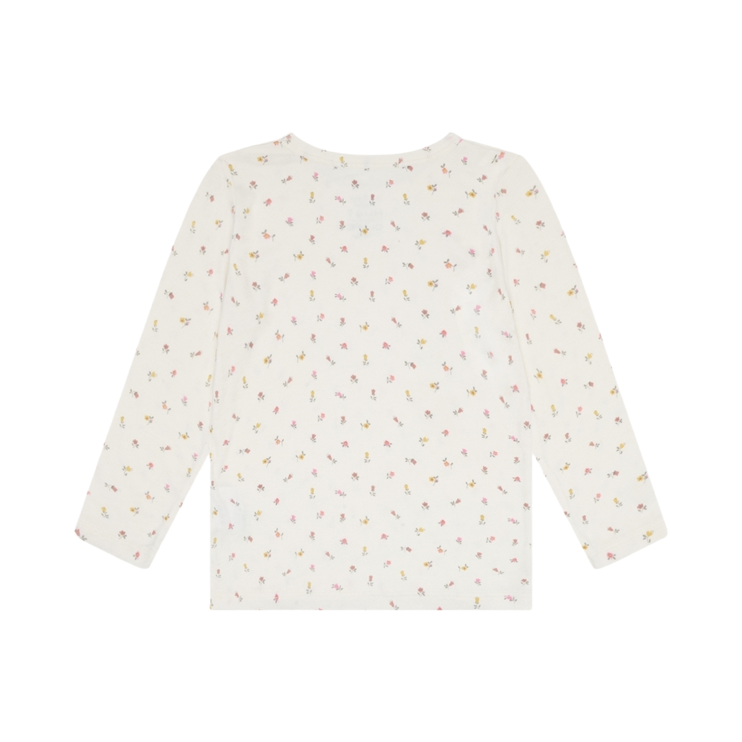 Langermet trøye i bambus m/blomster, Naturhvit