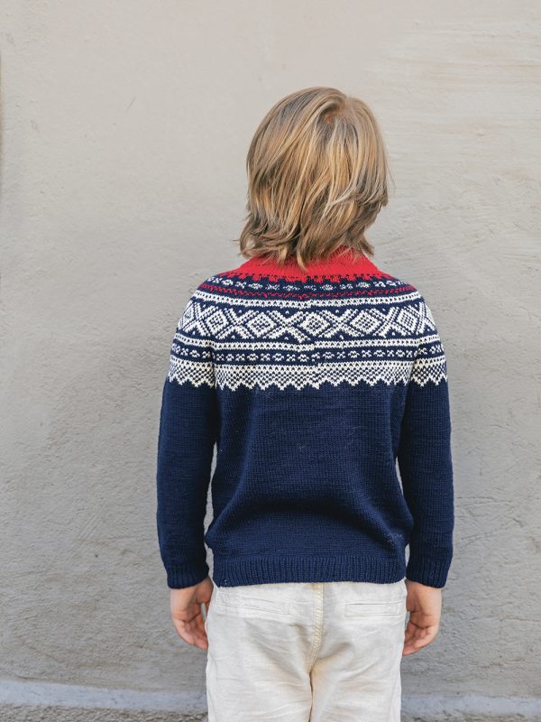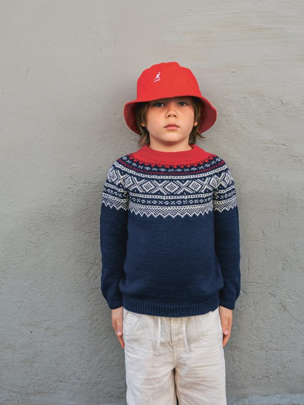 Strikkepakke til Marius genser junior, strikket i Babyull Lanett fra Sandnes Garn