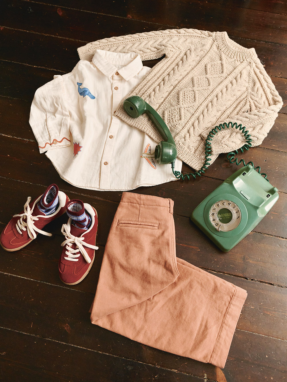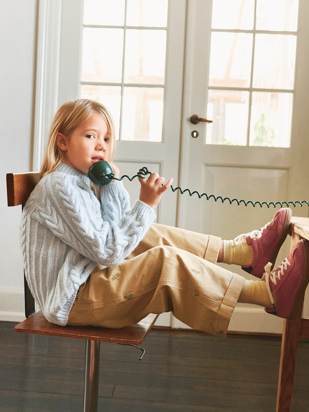 Klassisk barnegenser med fletter. Nilo Sweater Junior strikkes ovenfra og ned med raglan i Double Sunday.